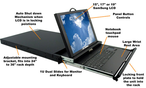 drawer. Our 1U dual rail rackmount PS2 or USB KVM drawer which comes with