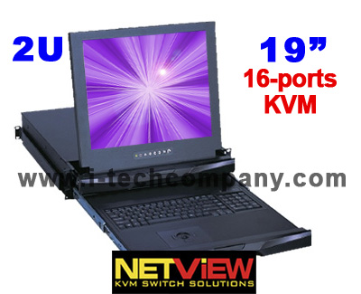 2U Rackmount 19" LCD keyboard w/16-ports KVM (Model: NVP219-1601)